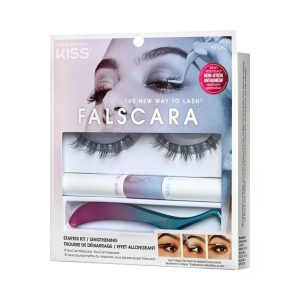 Το επόμενο κιτ επέκτασης βλεφαρίδων που δοκίμασα ήταν από τη μάρκα KISS. Την προσοχή μου τράβηξε αμέσως το γεγονός ότι το Falscara Starter Kit περιέχει μόνο 10 βλεφαρίδες cluster, γεγονός που το καθιστά αρκετό για μία μόνο εφαρμογή. Ωστόσο, αποφάσισα να μην αποθαρρυνθώ αμέσως. Ο κατασκευαστής παρέχει επίσης: